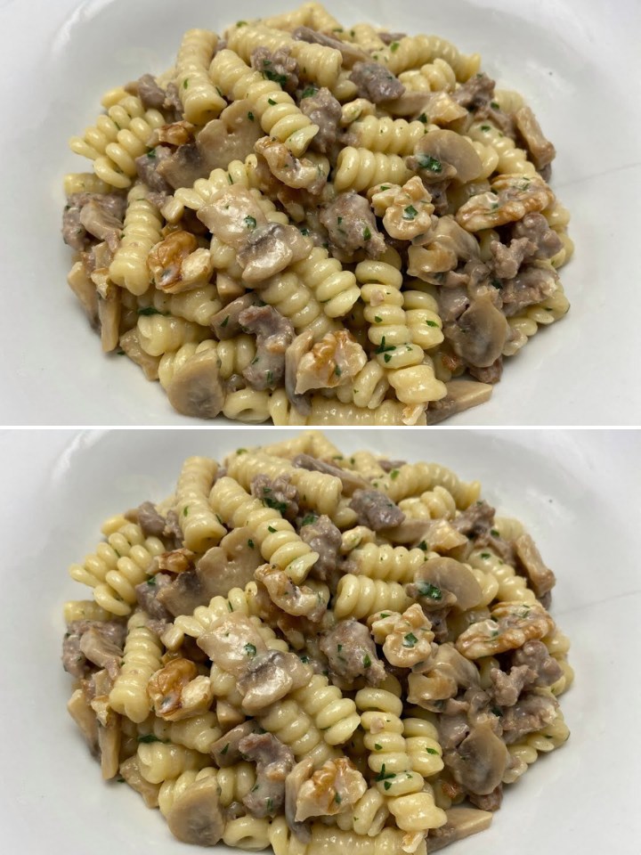 Fusilli met Worst, Champignons en Walnoten: Een Herfstige Triomf op Tafel