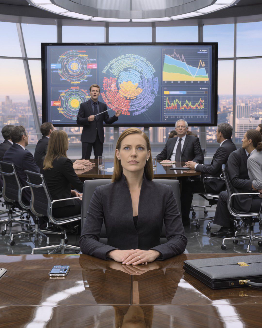 Ik herinner me dat ik eerst de glans opmerkte – de manier waarop het ochtendlicht weerkaatste op de gepolijste walnotenhouten tafel in de grote vergaderzaal van Davidson Industries. De tafel was de trots van mijn vader geweest toen hij hem twintig jaar geleden bestelde, in de tijd dat het bedrijf nog groeide, elk kwartaal beter was dan het vorige, en ‘Davidson’ nog een naam was in de lokale zakenbladen. Nu was het slechts een duur meubelstuk in een bedrijf dat stilletjes afstevende op de ondergang.