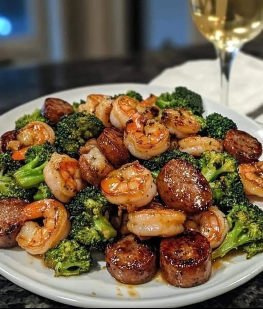 Dit gerecht is een ware smaakexplosie! 🌟 De combinatie van knapperige broccoli, sappige garnalen en pittige chorizo zorgt voor een heerlijk contrast in textuur en smaak. De knoflook en sojasaus geven het geheel een hartige, umami-touch, terwijl een vleugje honing zorgt voor een subtiele zoetigheid. Dit alles samen maakt het een perfect gerecht voor een snelle, voedzame en indrukwekkende maaltijd!