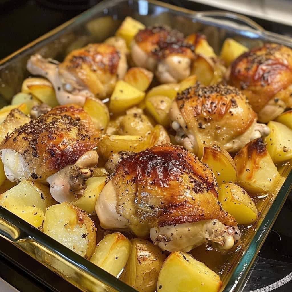 Een koekenpan met knoflookgeroosterde kip en krieltjes is een makkelijk te bereiden, heerlijke en gezonde maaltijd voor het hele gezin.