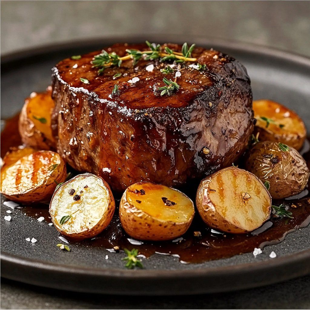 Geglazuurde rosbief met honing en krieltjes