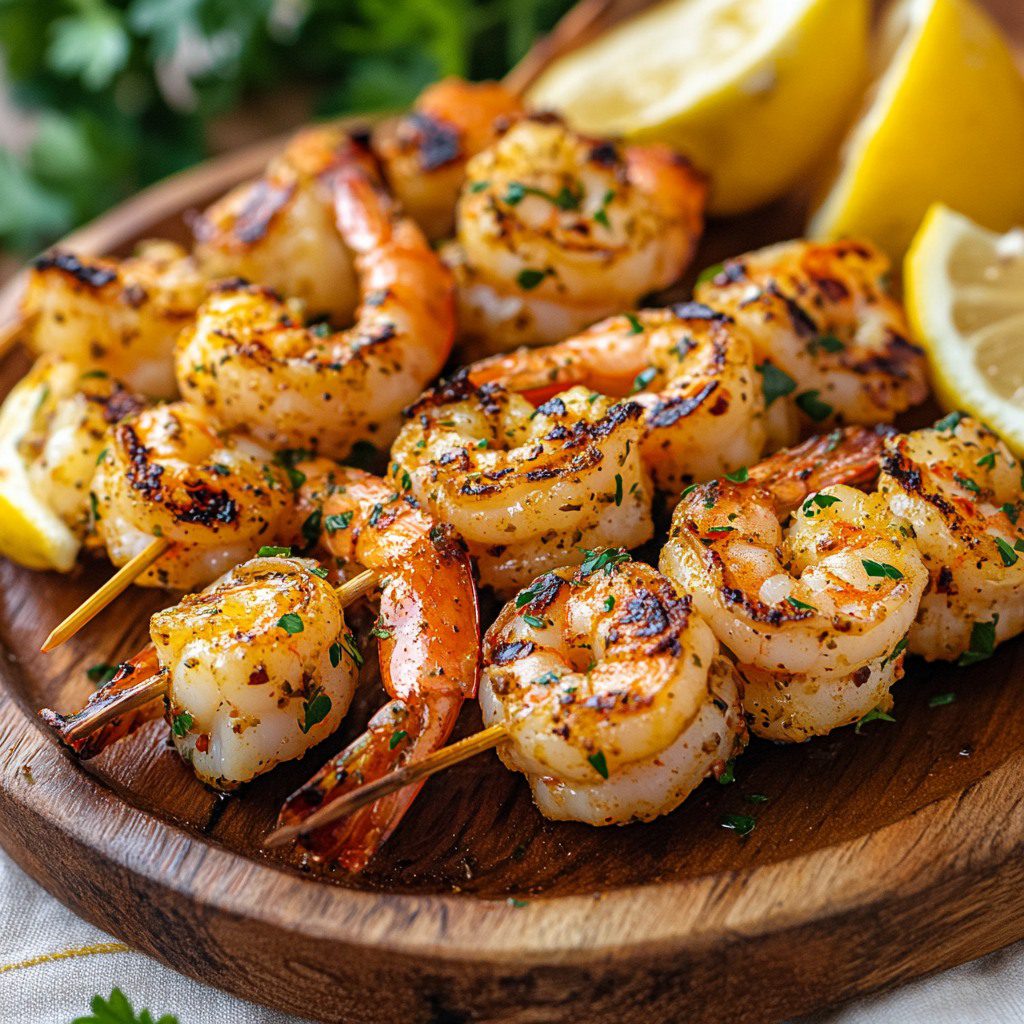Gegrilde garnalenspiesjes op mediterrane wijze