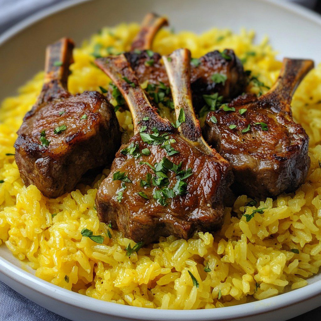 Gele rijst met lamskoteletten
