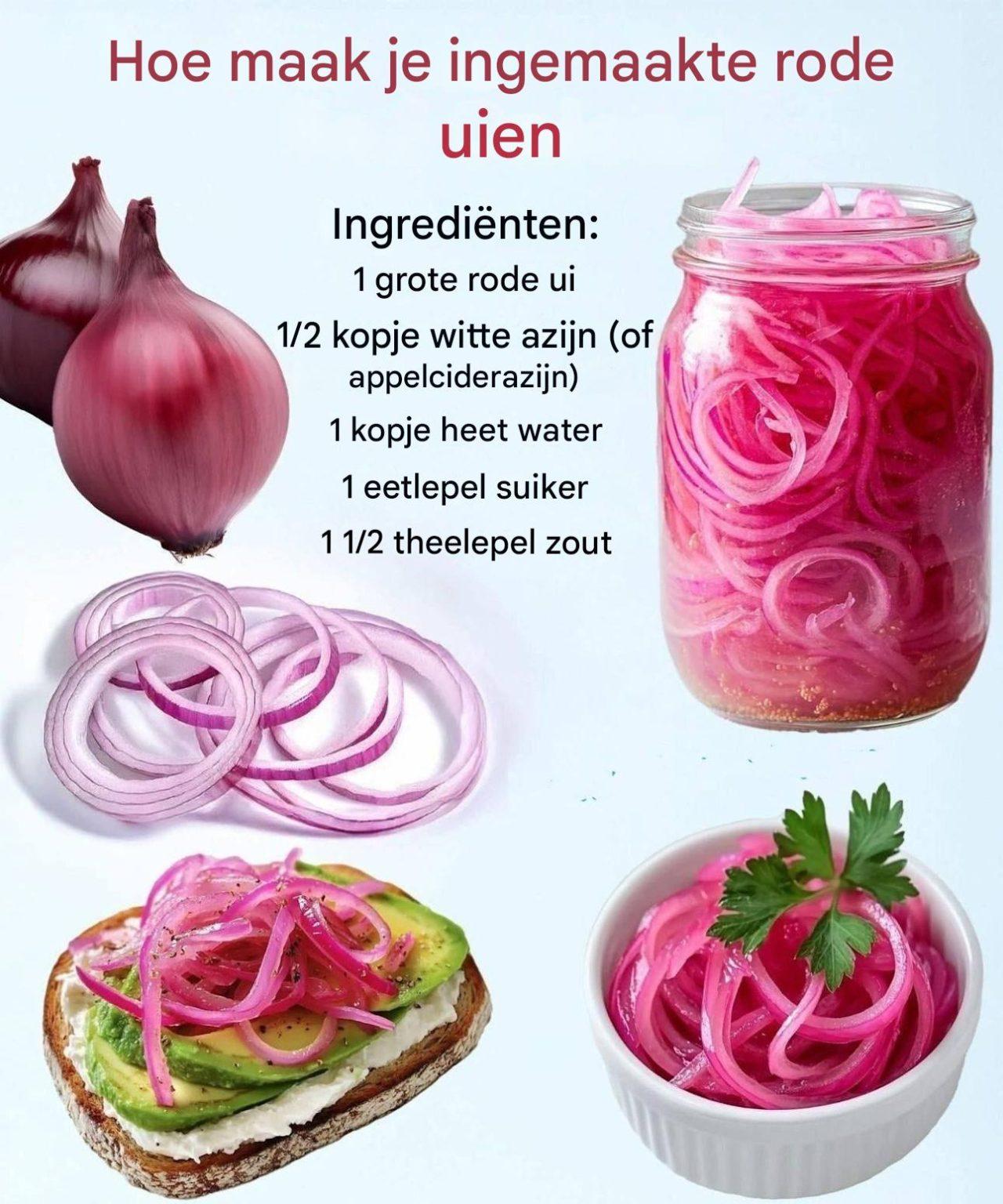 1 grote rode ui, in dunne ringen of halve maantjes gesneden. Ingrediëntenbundels voor het recept.