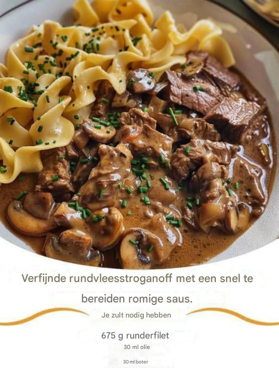Deze rundvleesstroganoff onderscheidt zich door mals, smeltend vlees en een gladde, smaakrijke saus. Het is eenvoudig te bereiden, geschikt voor een alledaagse maaltijd en voor een gezelligere gelegenheid, vergezeld van pasta, rijst of aardappelpuree.
