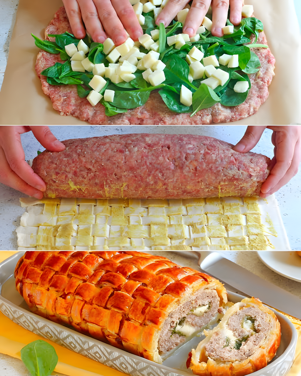 Gevlochten Bladerdeeggehaktbrood met Spinazie en Scamorza 🥩🥬🧀
