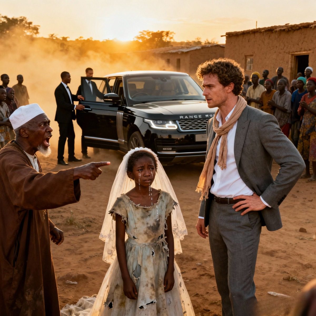 De bruiloft vond drie dagen later plaats. De mensen kwamen om te lachen, niet om hun zegen uit te spreken. « Het weesmeisje trouwt met een bedelaar! » fluisterden ze. Amina droeg een eenvoudige jurk gemaakt van een oud lakentje. Ibrahim, zoals altijd zwijgzaam, stond naast haar, zijn ogen kalm maar ondoorgrondelijk.