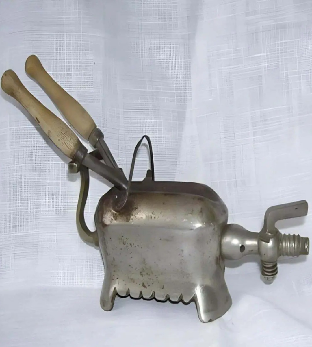 Hoe werkte het? Een metalen basis, verbonden met een gasbron, verwarmde een afneembaar cilindrisch strijkijzer. Eenmaal op temperatuur werden er haarstrengen voorzichtig omheen gewikkeld om golvende krullen te creëren, erg in de mode in het Victoriaanse tijdperk. Het resultaat: een elegante, heldhaftige look.