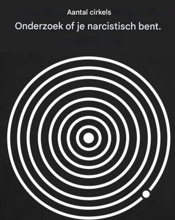 Je hebt deze meme misschien al eens eerder gezien: een afbeelding van concentrische cirkels met de pakkende titel: « Het aantal cirkels dat je ziet, bepaalt of je een narcist bent. » Intrigerend, toch? We kijken, we tellen… en we vragen ons af: Ben ik normaal? Een narcist? Of is dit gewoon weer een internetgrap?