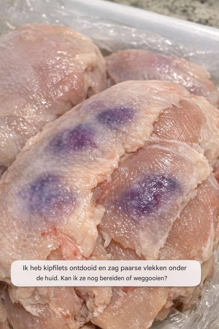 Je staat aan je aanrecht, klaar om het avondeten te bereiden, wanneer je het plastic van je ontdooide en ingevroren kipfilets verwijdert. Daar, onder de huid, zie je duidelijke paarse of donkerrode vlekken . Je hart zakt in je schoenen. Is dit een teken van bederf? Een gezondheidsrisico? Moet je het risico nemen of €15 aan eiwitten meteen in de prullenbak gooien? Dat moment van culinaire onzekerheid komt vaker voor dan je denkt – en het antwoord is niet altijd wat je verwacht.