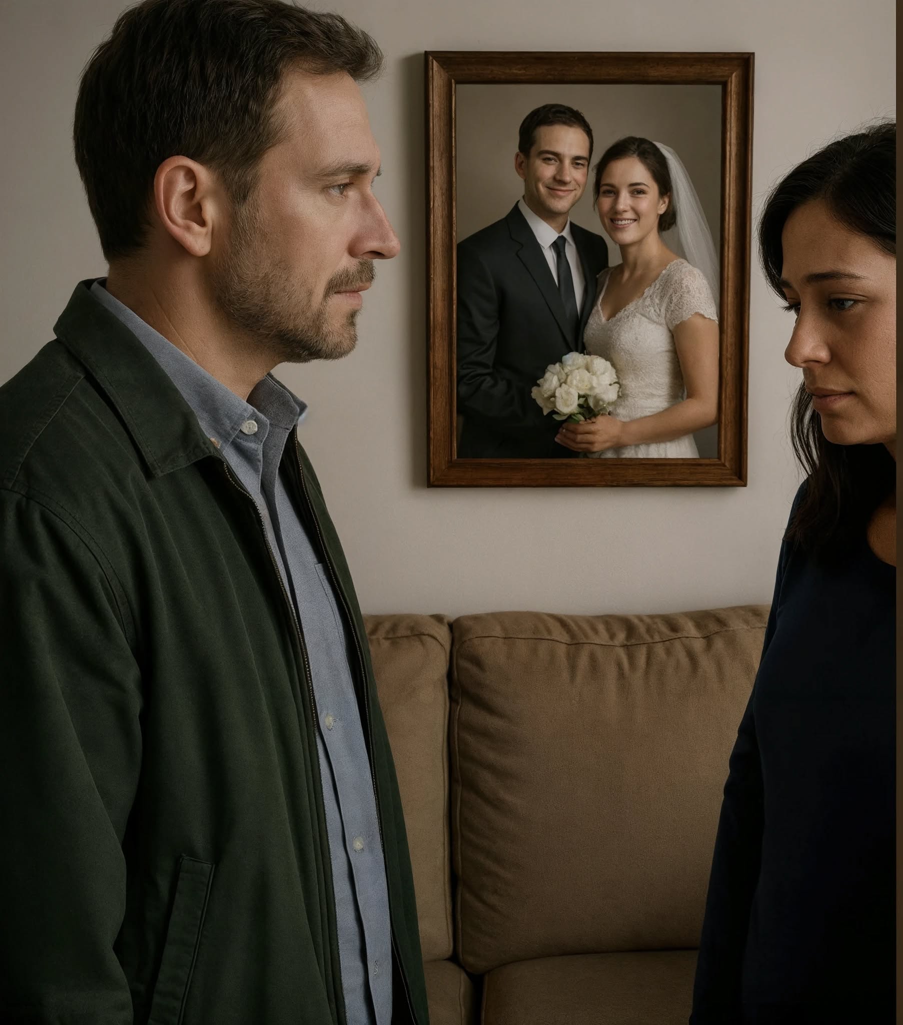 Aan de muur van de woonkamer, boven de kleine fluwelen bank, hing een ingelijste foto. De foto erin hield me als aan de grond genageld.