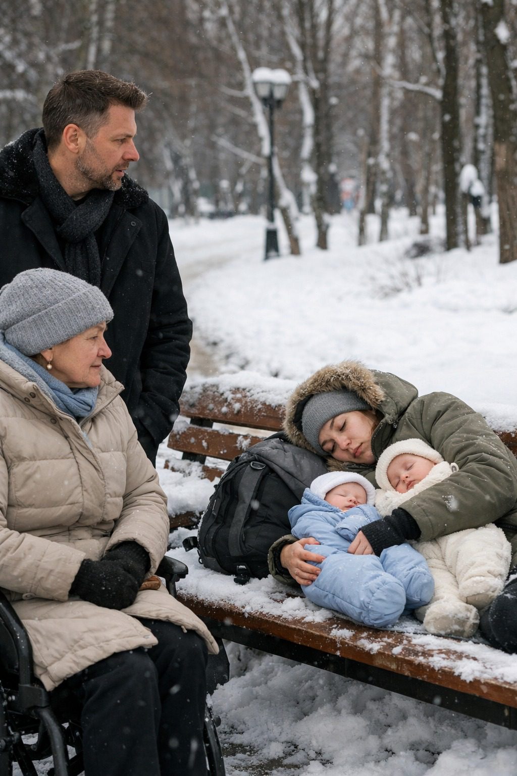 Adrián stond roerloos. De wereld waarin hij alles had beheerst met cijfers, mensen en processen, was plotseling gekrompen tot een enkele bank. Tot een vrouw van wie hij ooit had gehouden. Tot twee kleine pakketjes waaruit een zachte, nauwelijks hoorbare zucht te horen was.
