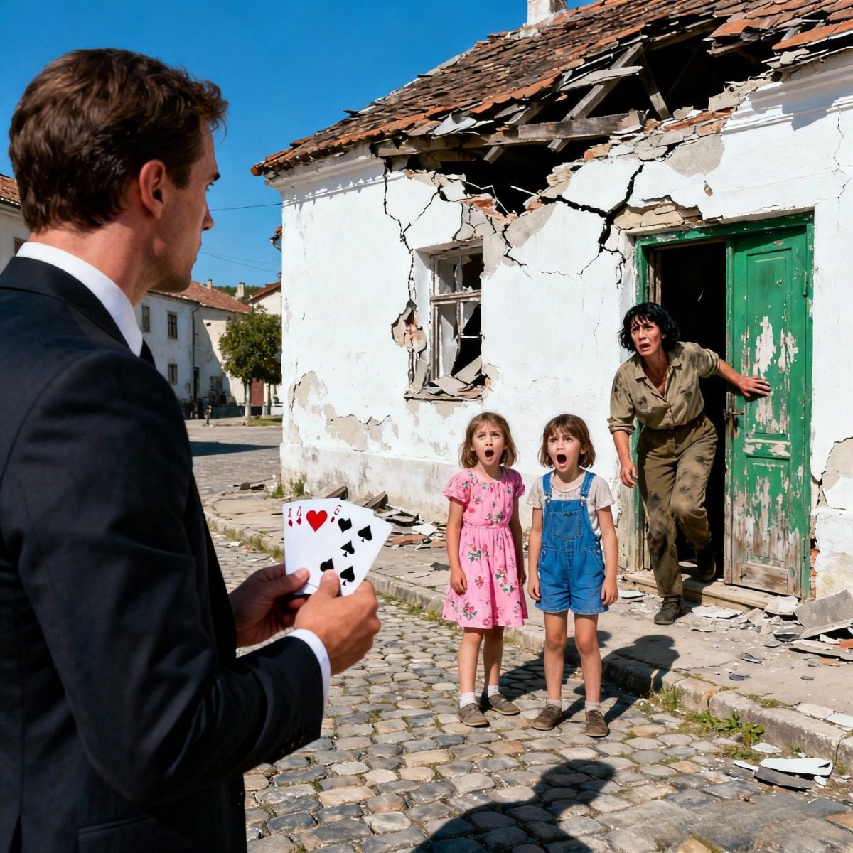 Het huis aan de overkant van de straat – ooit warm en vol leven – lag nu in puin : gebarsten muren, gebroken ramen en een dak dat langzaam instortte.