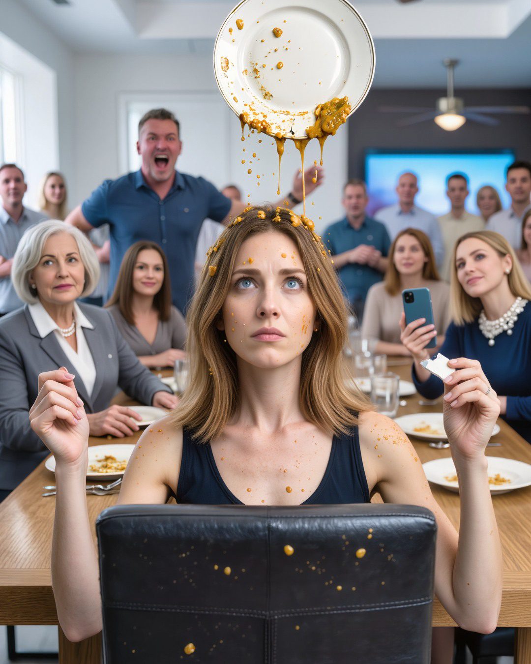 Zijn zus zat half omgedraaid in haar stoel, haar telefoon al op mij gericht, het kleine rode opnamelampje brandde. Er krulde zich een grijns op haar mond die ze niet probeerde te verbergen. Drama was haar levenselixir. Ze zag eruit alsof ze net de loterij had gewonnen.
