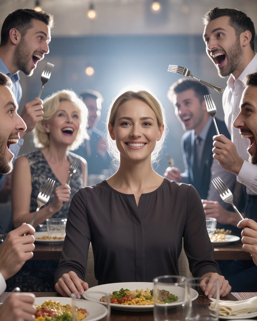 “…en daar stond Maya,” zei ze, haar stem luid genoeg om tot aan de tafel ernaast te reiken, “te huilen in mijn keuken omdat ze een ovenschotel had laten aanbranden. Een ovenschotel!” Ze lachte licht en scherp. “Ik zei tegen haar: ‘Schatje, je zult nooit een man behouden als je niet eens een timer goed kunt gebruiken.’”