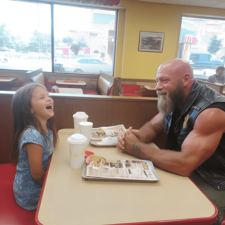 Lang, breedgeschouderd, zijn armen bedekt met tatoeages, zijn gezicht getekend door littekens en zijn leren vest vol symbolen die de meeste mensen niet herkenden. Ouders in de McDonald’s-eetzaal fluisterden als hij binnenkwam. De manager fronste telkens als hij eten bestelde. Zelfs andere klanten hielden afstand, ervan overtuigd dat hij gevaarlijk was.