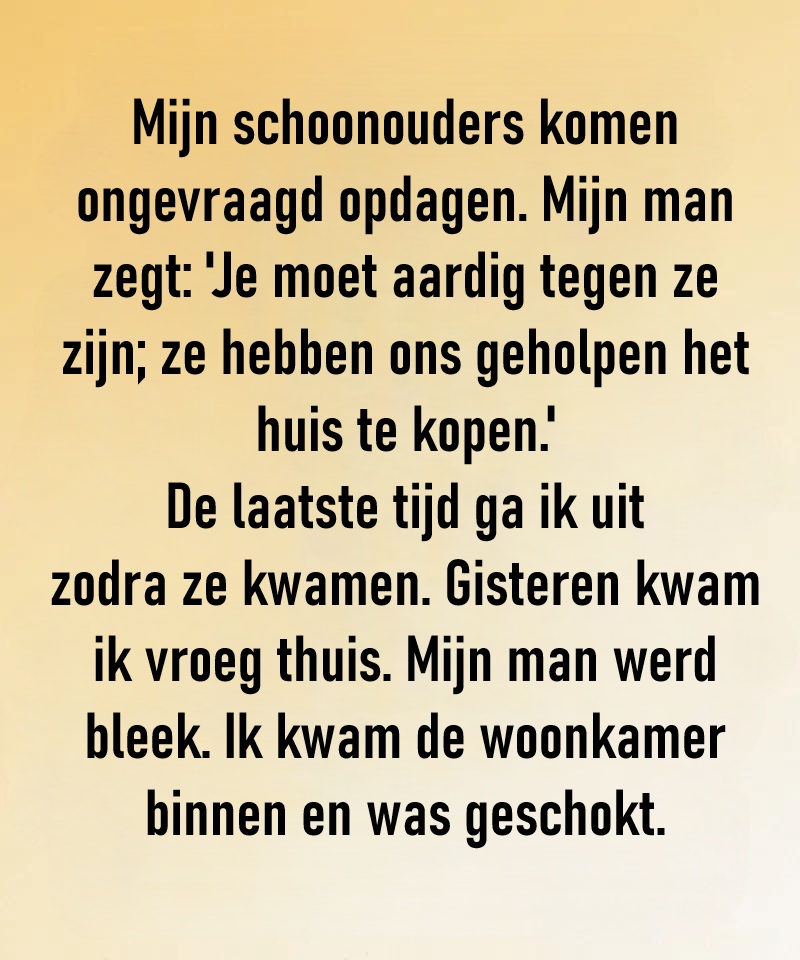 Mijn schoonouders komen opdagen, ook al waren ze niet uitgenodigd.