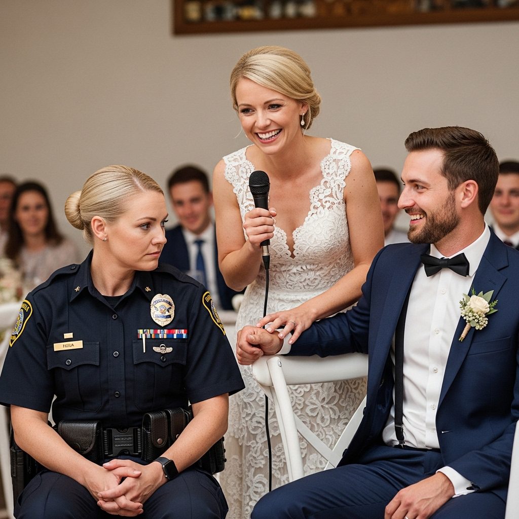 Ik financierde de luxe bruiloft van mijn zus en zat op de achterste rij. « Ze is maar een portier, wie zou haar nou kiezen? » lachte mijn zus in de microfoon. Toen stond de bruidegom op… en de balzaal werd muisstil.