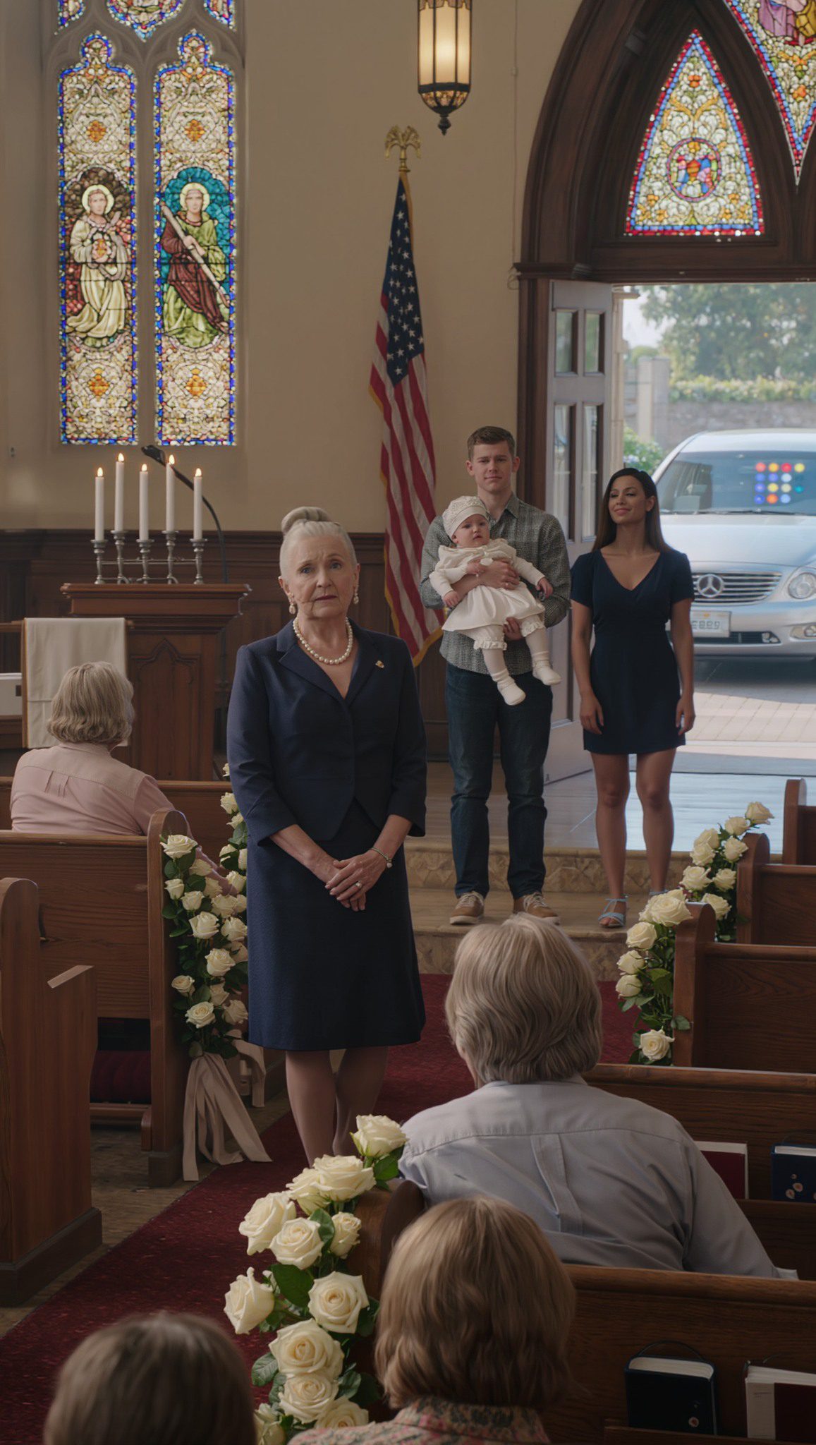 De ochtend van de doop brak aan met helder en zonnig weer. Ik arriveerde vijftien minuten te vroeg bij First Methodist, met Jacobs geschenk in mijn handen en met mijn meest trotse grootmoederlijke glimlach op mijn gezicht. De kerk was eenvoudig maar elegant versierd met witte rozen en gipskruid. Vrienden en familie namen al plaats in de kerkbanken, allemaal in hun zondagse kleding.