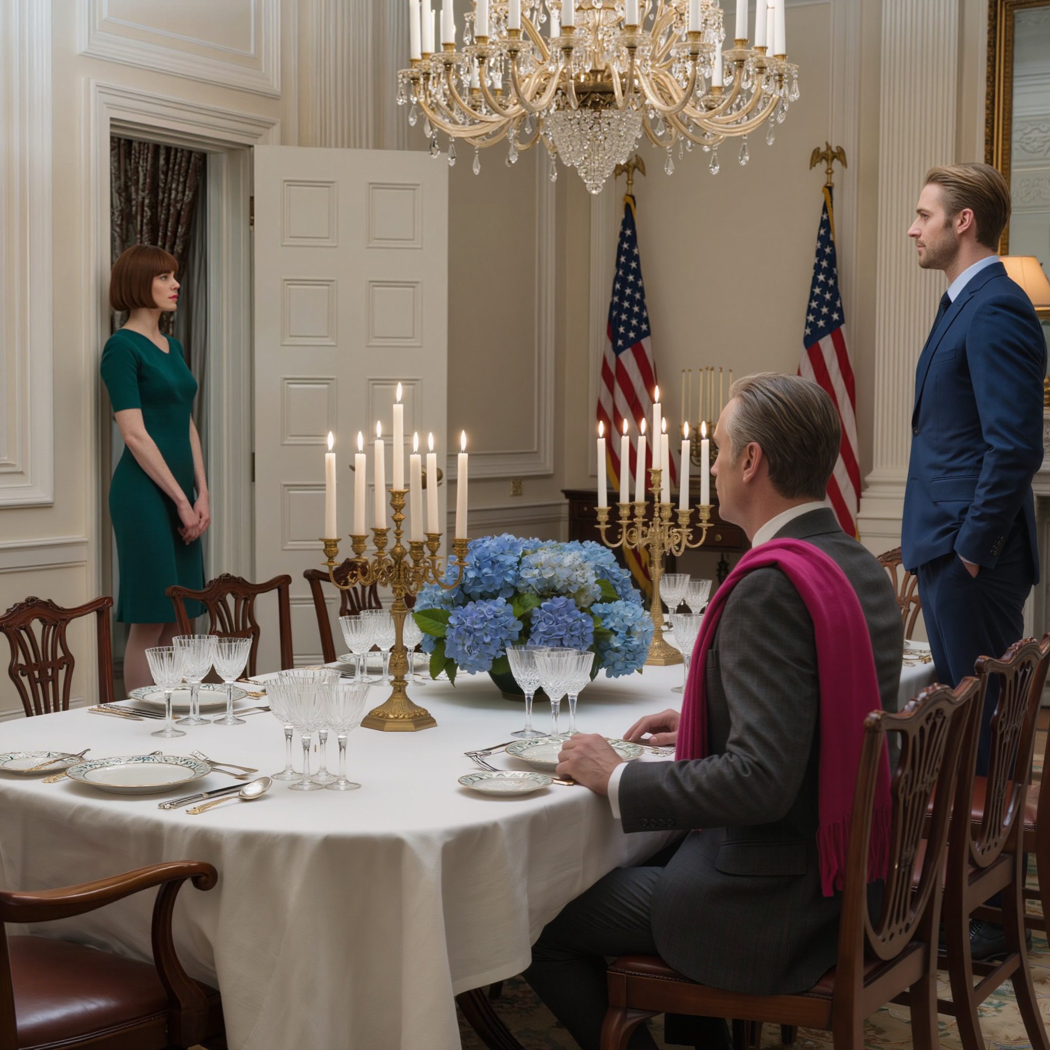 Toen ik eindelijk, overstuur en te laat, de grote eetkamer van het landhuis binnenliep, verstijfde ik. Dezelfde dakloze man die ik net had geholpen, zat aan het hoofd van de tafel.