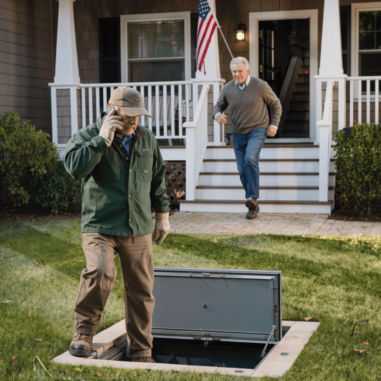 Ik had iemand ingehuurd om het gazon te maaien terwijl mijn dochter weg was. Ongeveer een uur later belde hij: « Meneer… is er nog iemand anders in uw huis op dit moment? » Ik had nog niet eens de tijd gehad om het nog eens te vragen, of hij vervolgde: « Ik hoor gehuil… uit uw kelder. Dat is geen tv. » Op dat moment begreep ik het: mijn huis zou wel eens iets kunnen verbergen waar ik nooit iets van had geweten.