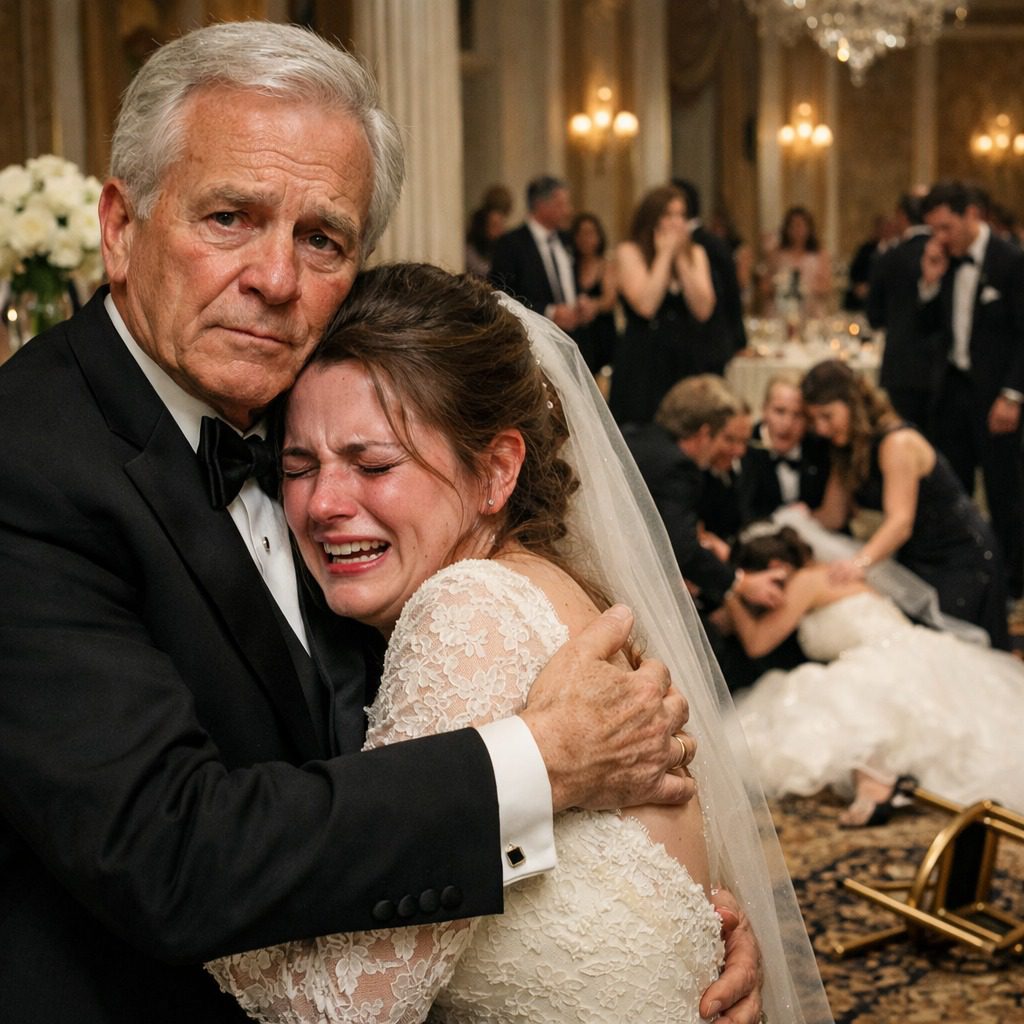 Mijn zus goot niet zomaar een glas vintage rode wijn over mijn witte zijden jurk; ze orkestreerde het met de precisie van een gecontroleerde sloop. Ze keek me recht in de ogen, haar blik koud en leeg, en vertelde de aanwezige bewaker dat « het personeel » niet mocht huilen in het bijzijn van de gasten.