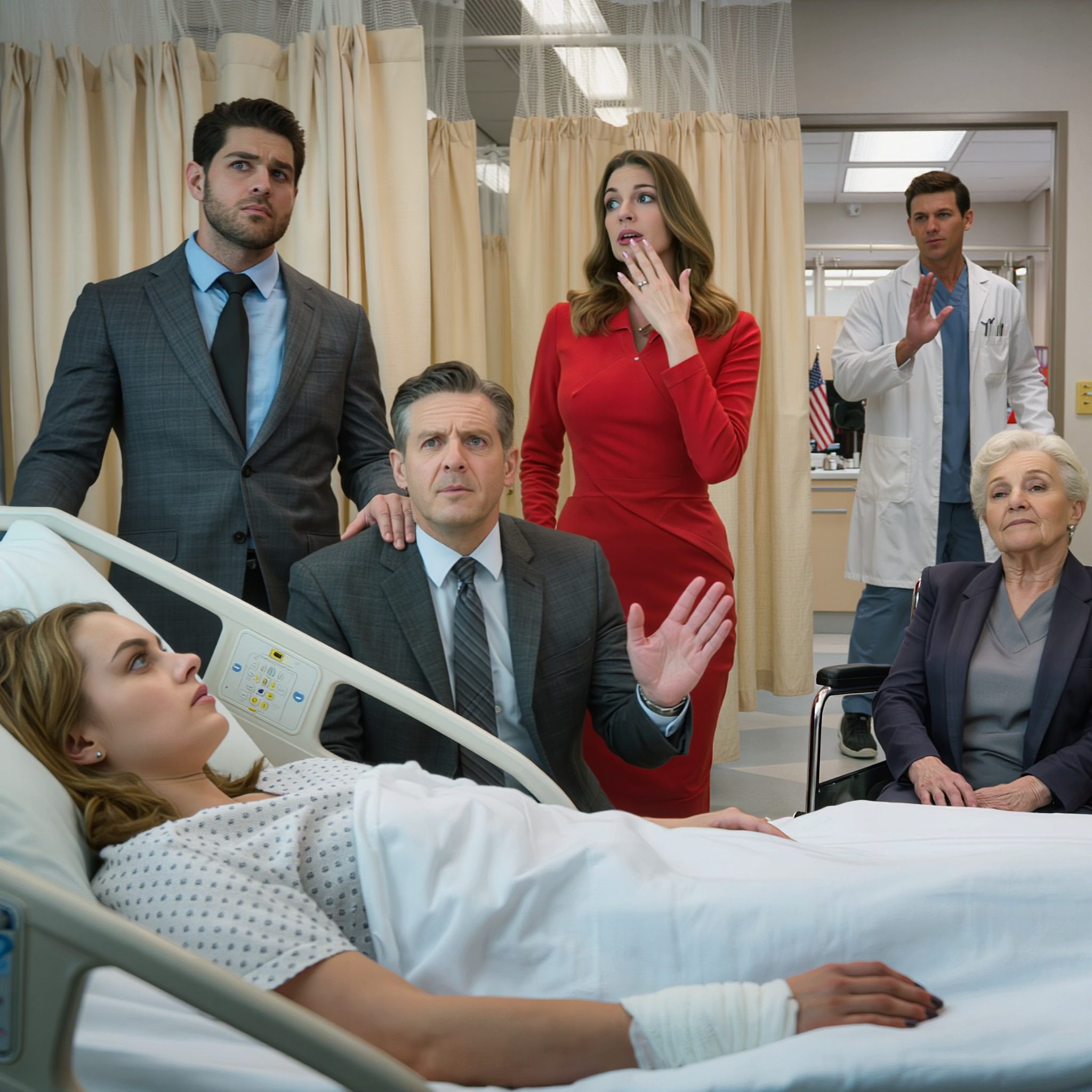 De gordijnringen gierden tegen de metalen stang toen de scheidingswand met een ruk werd opzijgeschoven. Licht overspoelde mijn blik, te fel en te plotseling. Ik kneep mijn ogen samen, in de verwachting dat er een verpleegster met een beker ijsblokjes zou komen. In plaats daarvan stonden er drie figuren aan het voeteneinde van mijn smalle, oncomfortabele bed.