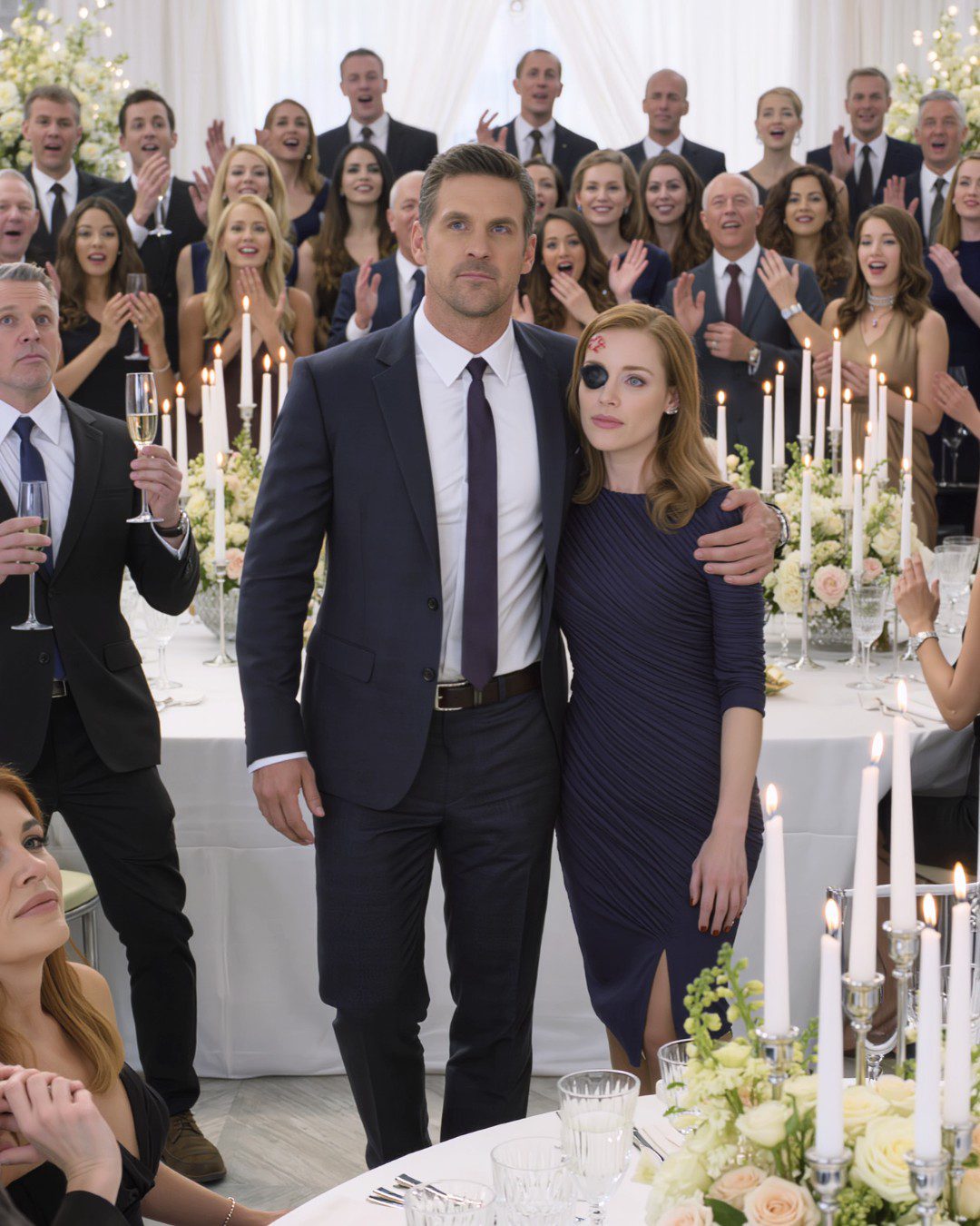 Ryans vingers klemden zich steviger om mijn schouder, als een bevel. « Lach, » mompelde hij, zijn adem warm tegen mijn oor. « En onthoud het verhaal. »