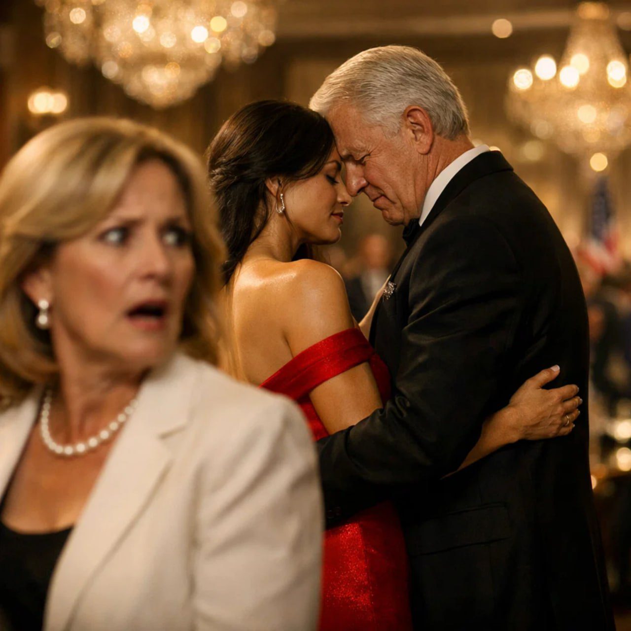 Ze was jong. Pijnlijk, intens jong. Misschien vijfendertig. Haar honingblonde haar viel in golven over haar blote schouders en voelde zacht aan. Ze droeg een rode jurk – een opvallende, rugloze jurk die schreeuwde om aandacht. Die kostte waarschijnlijk meer dan mijn maandelijkse boodschappenbudget voor een jaar.