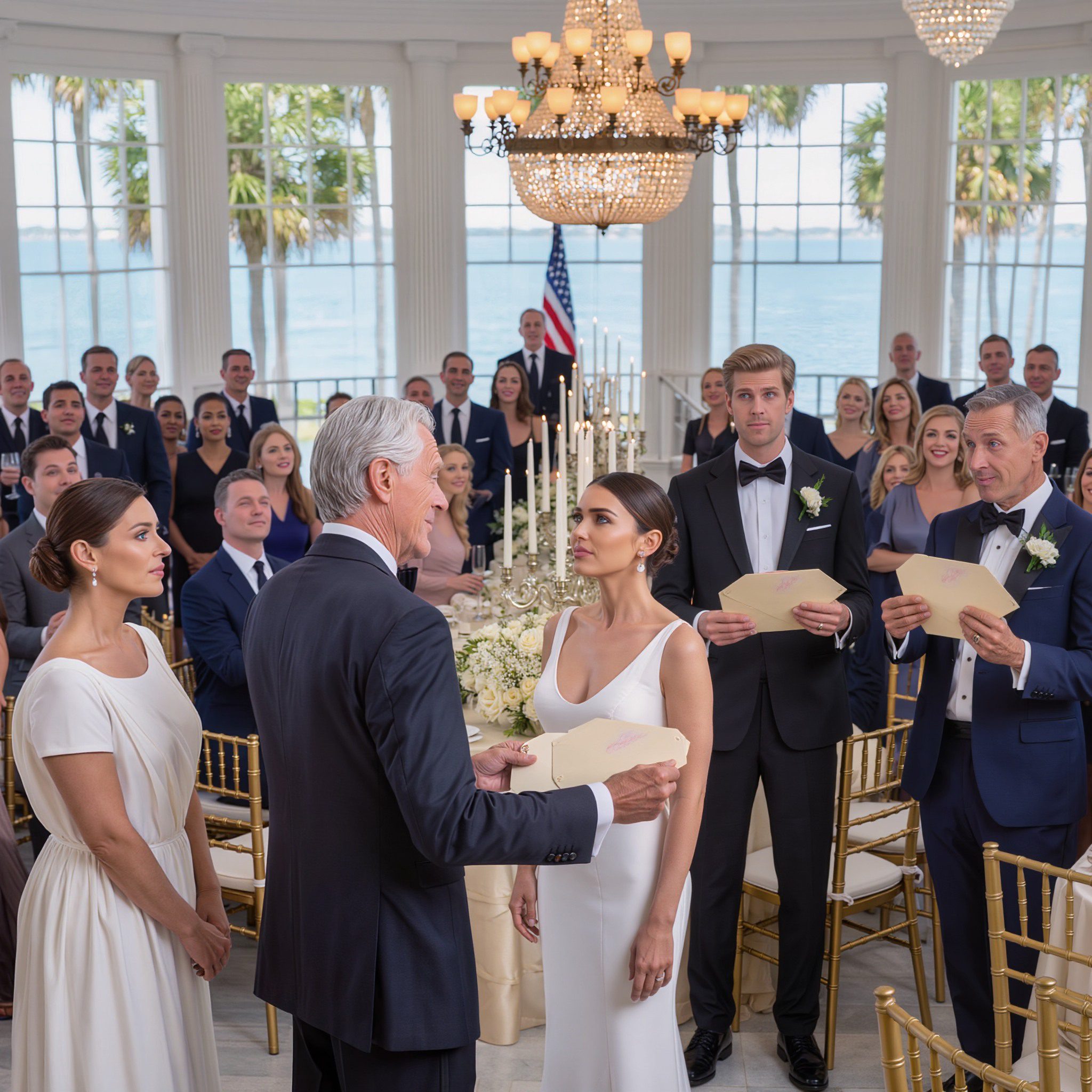 Ik ving per ongeluk op dat de verloofde van mijn dochter tegen zijn vader zei: « Op de bruiloft ga ik hem voor schut zetten voor iedereen. » Ik glimlachte alleen maar en belde. Op de dag van de bruiloft gaf ik ze twee enveloppen. Toen ze die openden, viel de hele zaal stil.