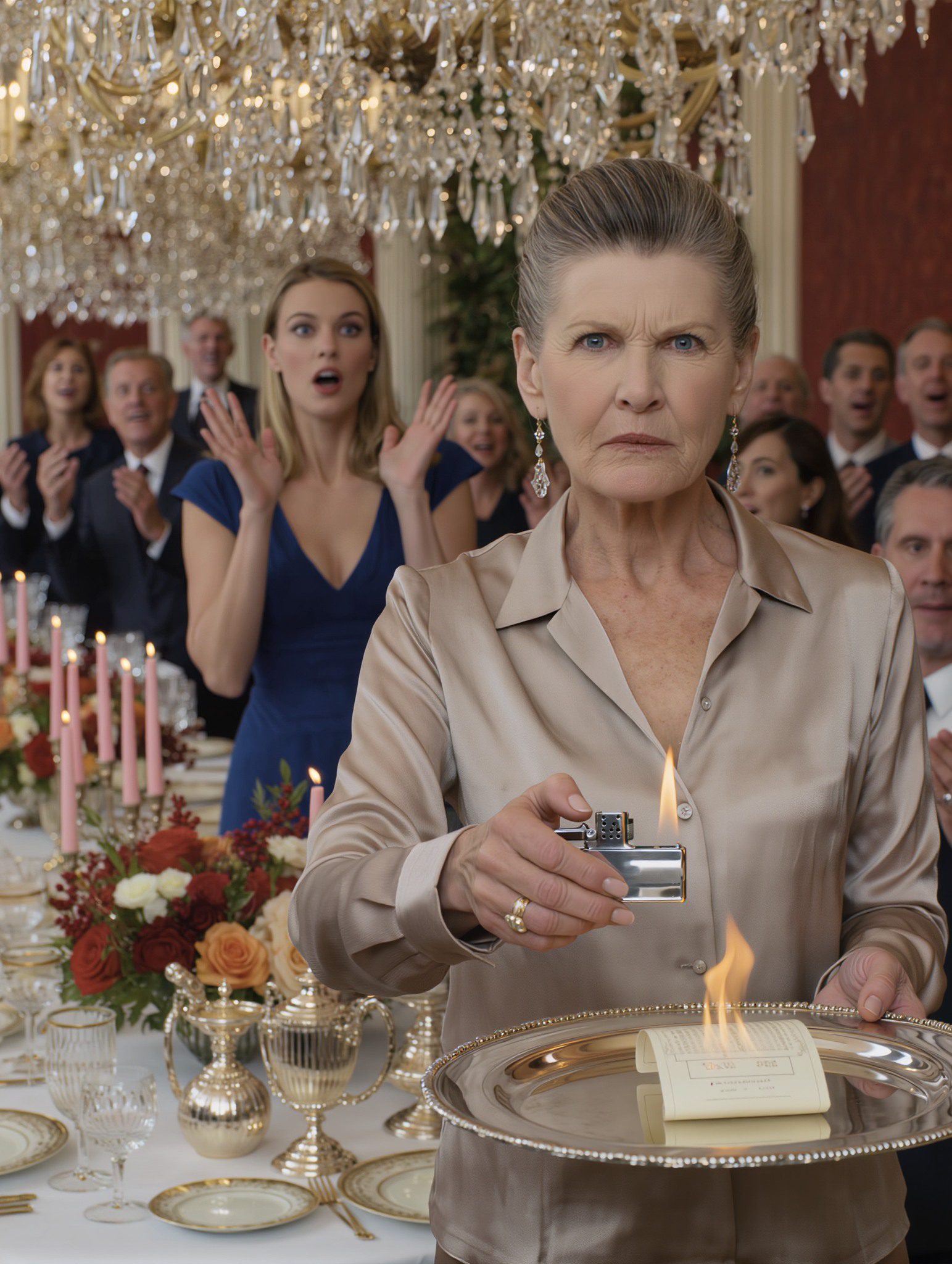 Op de achtergrond klonk het zachte geklingel van bestek, het verre gemurmel van andere gesprekken, en toen de onmiskenbare stem van Margaret – helder, kortaf, gehuld in die ijzige beleefdheid die ze als parfum droeg.