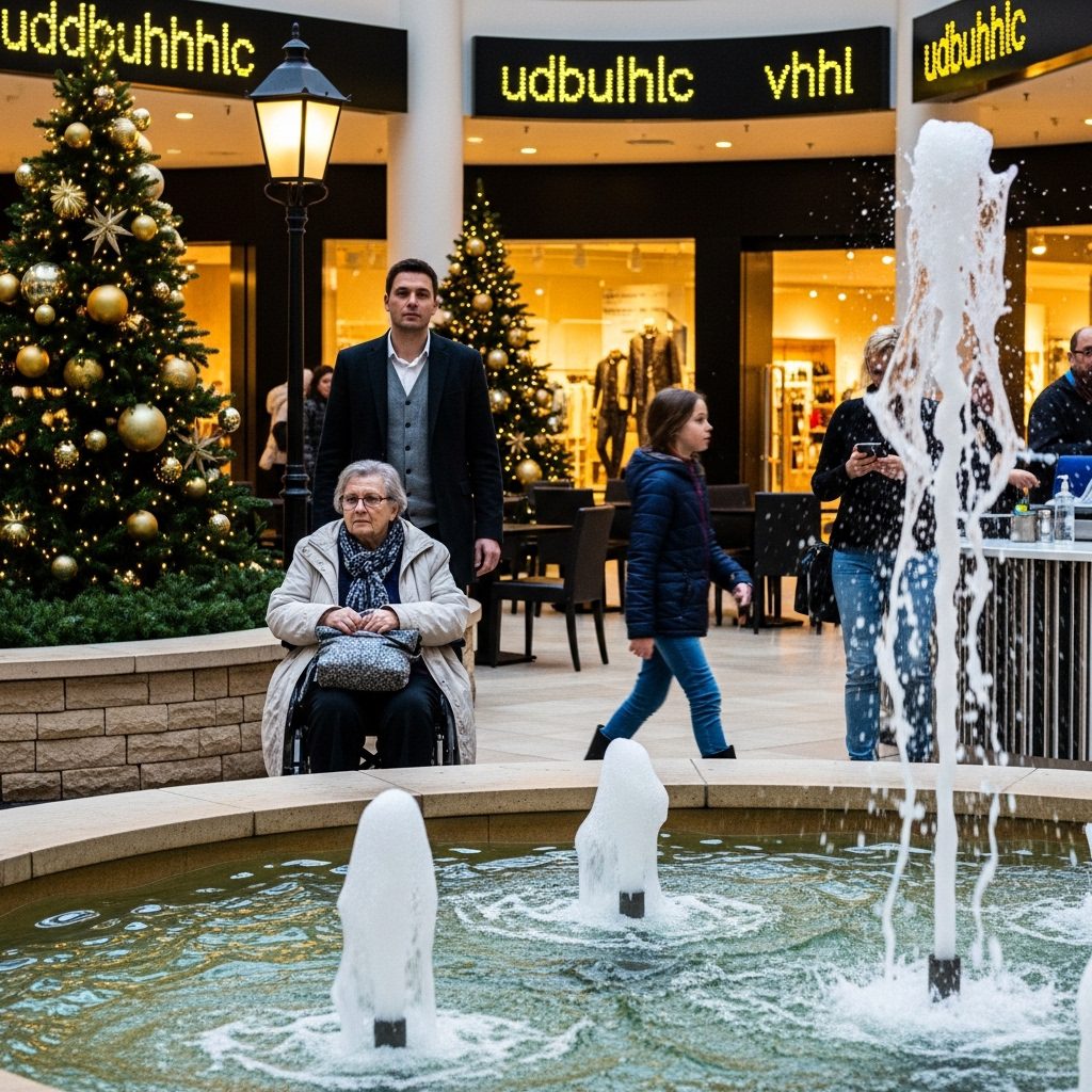 Het winkelcentrum was warm en stijlvol, met veel dakramen en zachte muziek – de kerstversiering hing er nog in kleine sliertjes met glitters. De lucht rook naar kaneelpretzels en parfummonsters. Mensen zweefden voorbij met papieren bekers en boodschappentassen, praatten dicht bij elkaar en lachten alsof de dag van hen was.