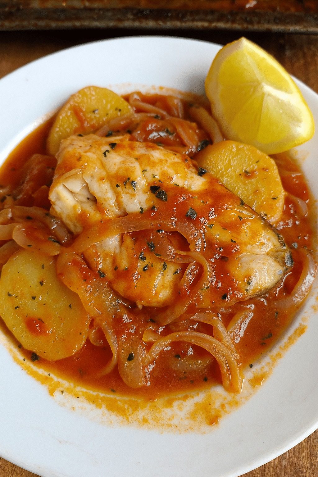 Plaki is een gerecht dat zowel je huis als je portemonnee spaart: een paar ingrediënten die je overal kunt vinden, en een resultaat dat heerlijk ruikt tijdens het koken. De vele uien smelten en zoeten de saus, de aardappelen worden perfect door het vocht, en de vis blijft mals – zolang je hem op het juiste moment toevoegt. Dit gerecht is eenvoudig, smaakvol en ideaal voor een familiediner.