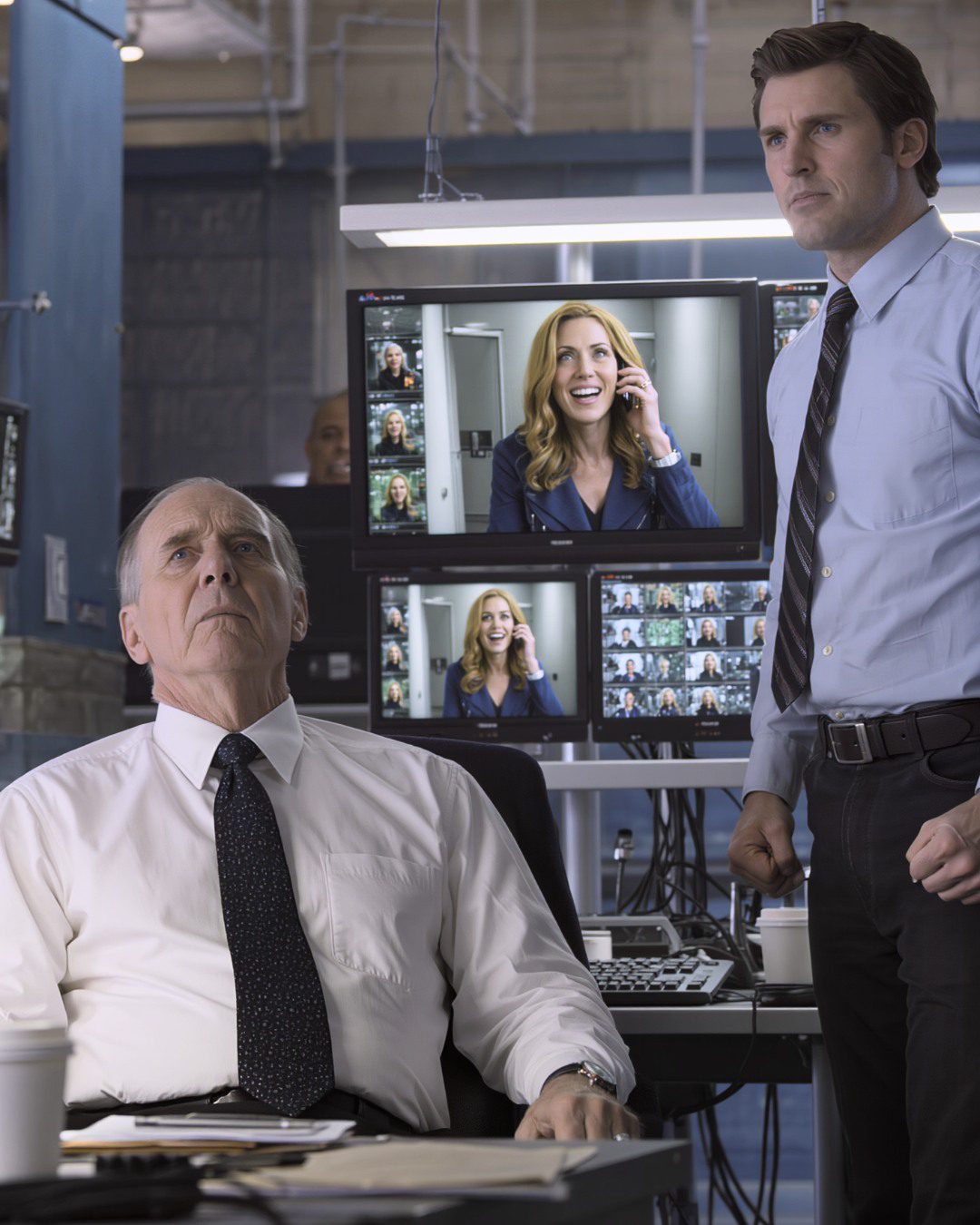 Links een bureau met een verbleekte muismat en een computerkast die klonk alsof hij astma had. Rechts drie grote monitoren, elk verdeeld in een raster van camerabeelden. De beelden stuiterden en flikkerden met korrelige scherpte: kassa’s, ingangen, roltrappen, cosmeticabalies. En één camera, ongeveer in het midden van de bovenste monitor, was gericht op de gang naar de paskamers.