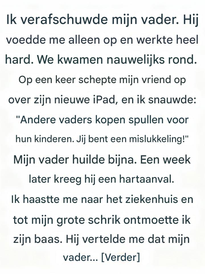 Hij was mijn enige ouder, maar toch leek hij altijd afwezig – niet omdat hij er niet was, maar omdat het leven met hem voelde als een voortdurende schaarste.