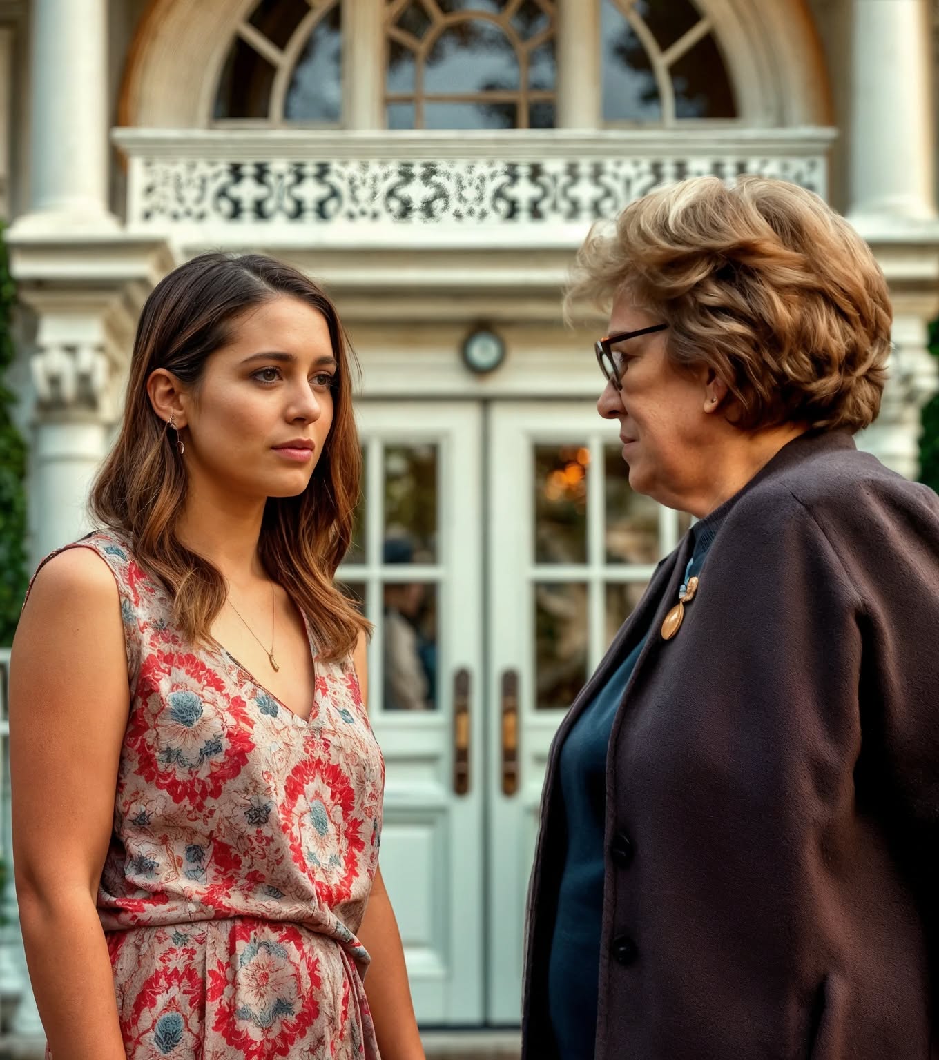 Ik zette een stap naar voren en verbrak de drukkende stilte die als een mist over ons hing. Mijn hakken tikten zachtjes op het marmer, aarzelend om de harmonie van de plek te verstoren.