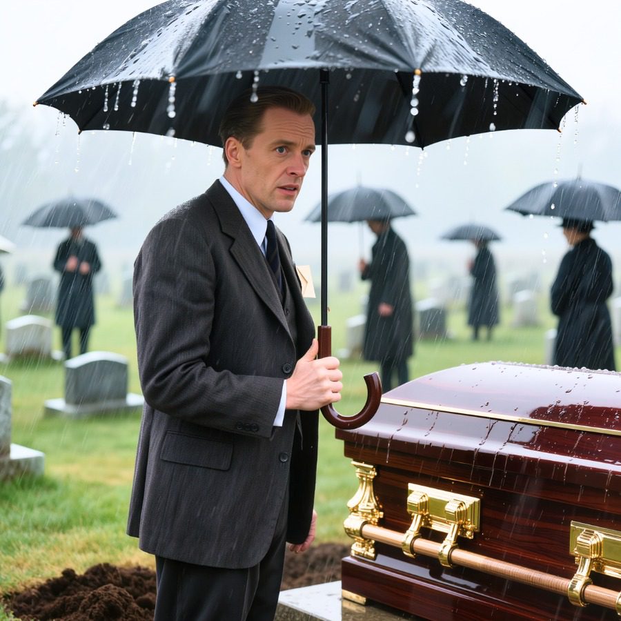 Max stond naast het graf van zijn moeder in een antracietkleurig pak dat nog vaag naar stijfsel en koude lucht rook. Water druppelde van de rand van de geleende paraplu die iemand van de kerk hem had gegeven, maar hij merkte het nauwelijks. Zijn blik bleef gericht op de kist die boven het donkere rechthoekje in de grond rustte, het gepolijste mahoniehout weerspiegelde het bleke ochtendlicht als iets te elegants voor een begrafenis. De mensen om hem heen depten hun ogen af, bogen hun hoofd en fluisterden met de plechtige choreografie die rouw in het openbaar vaak vereist. Max deed niets van dat alles.