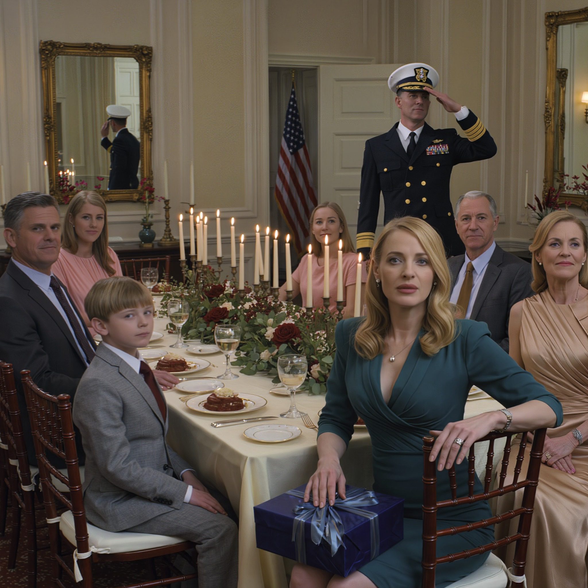 ‘Je brengt deze familie in verlegenheid,’ zei mijn moeder waar iedereen bij was. Zelfs mijn broer grijnsde en noemde me een mislukkeling. Net toen het diner begon, kwam de man van mijn zus in uniform binnenlopen en verstijfde plotseling. Hij stak zijn hand op om te salueren en zei: ‘Mevrouw.’ De vork van mijn vader gleed uit zijn hand en viel op de grond, en mijn zus werd bleek.