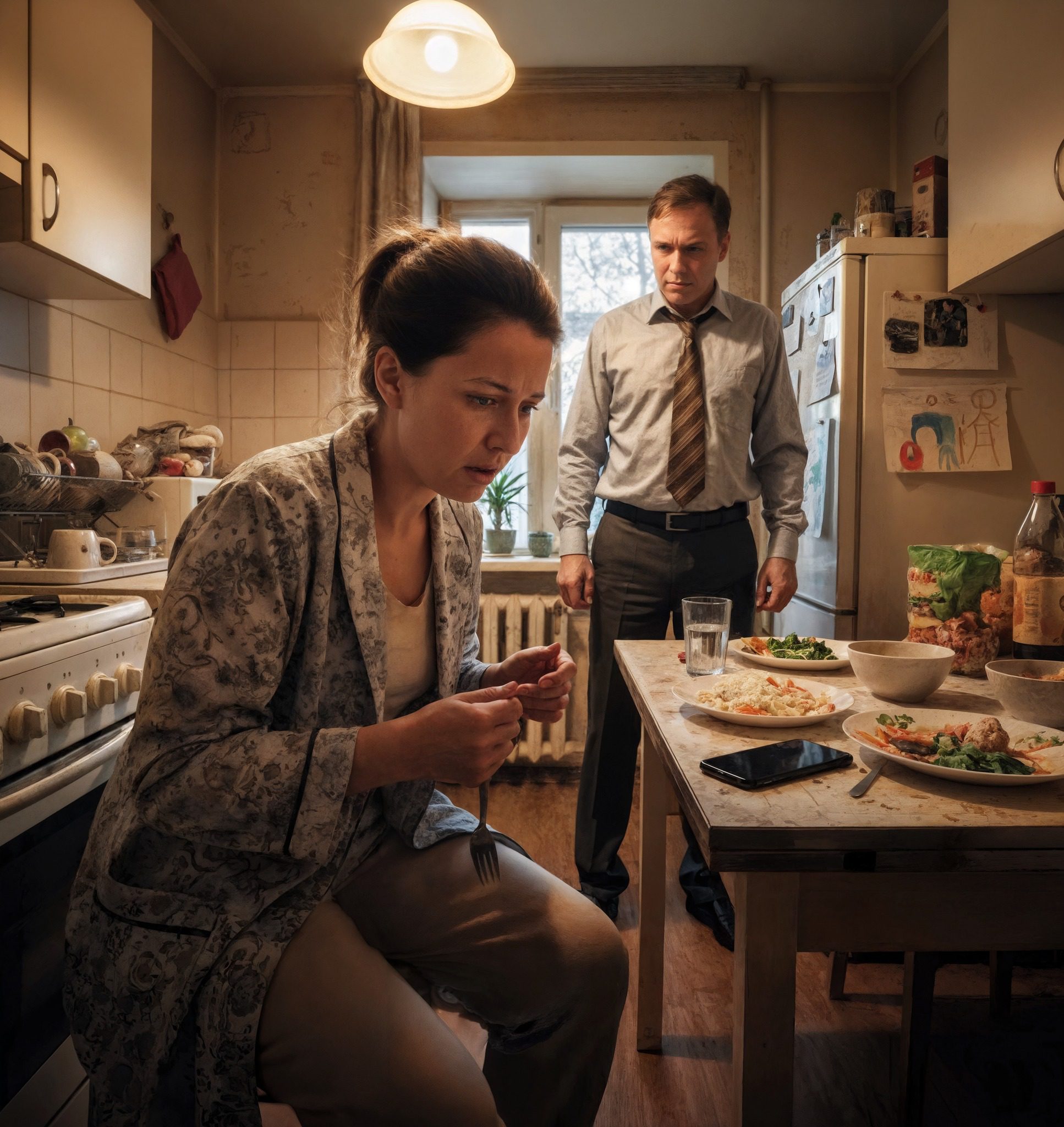 Het slot klikte. Andrey kwam de keuken binnenlopen – mijn man, mijn ‘rots in de branding’, zoals ik hem de afgelopen zeven jaar had beschouwd. Hij liet zijn jas op een stoel vallen, kwam naar me toe en kuste me op mijn kruin.