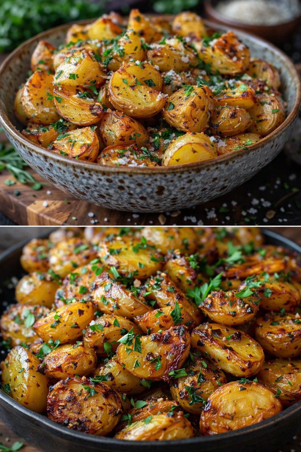 Deze ovenaardappelen zijn goudbruin en krokant aan de buitenkant, heerlijk zacht en romig vanbinnen, en afgewerkt met aromatische kruidenboter met knoflook en citroen. Een eenvoudig maar spectaculair bijgerecht dat perfect past bij een feestelijk diner of een gezellige zondagse lunch.