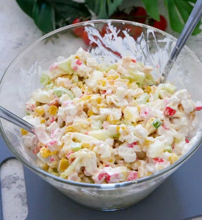 Als je op zoek bent naar een snel, voedzaam en toch delicaat gerecht voor het avondeten of een lichte snack, dan is deze krabsticksalade de perfecte keuze. Hij combineert sappige surimisticks, eiwit, knapperige komkommer en maïs – alles gemengd in een romige yoghurt-mayonaisesaus.