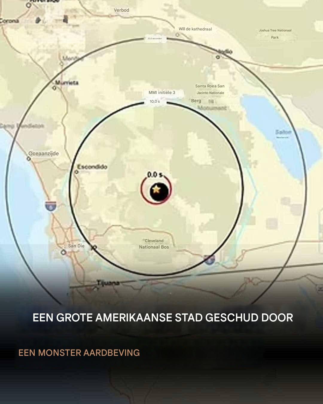 Een enorme aardbeving met een kracht van 5,2 op de schaal van Richter vond maandagavond plaats in de buurt van San Diego. De aardbeving veroorzaakte trillingen in heel Zuid-Californië en inwoners werden geschokt tot in Los Angeles, 190 kilometer verderop. De aardbeving, waarvan het epicentrum zich op enkele kilometers van het bergstadje Julian bevond, zorgde voor snelle noodoproepen, maar er werd niet meteen melding gemaakt van grote schade of gewonden.