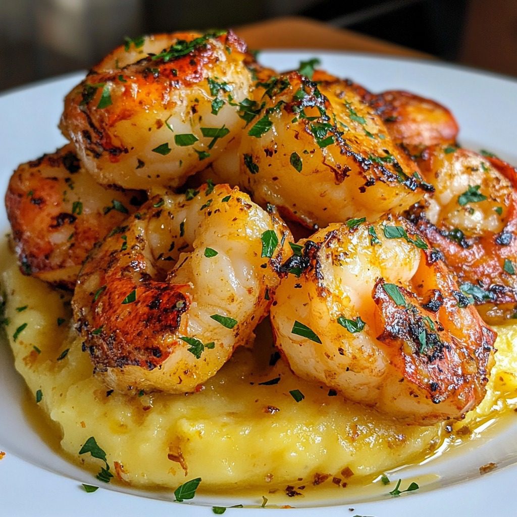 Kreeftenstukjes met knoflookboter en saffraanpuree