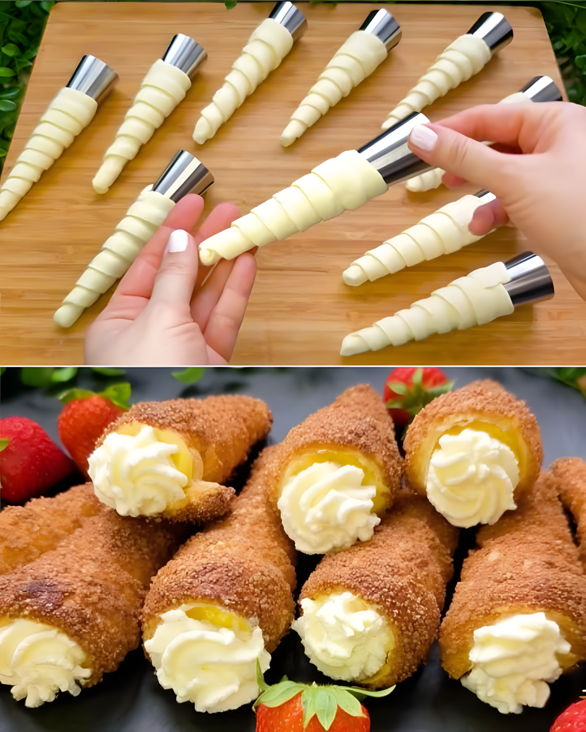 Deze hoorntjes zijn eenvoudig te maken en ontzettend lekker. Ze zijn een ware uitnodiging tot genot en creativiteit. Dankzij het knapperige bladerdeeg, gevuld met een romige crème, zijn ze een heerlijk genot voor alle gelegenheden. Ideaal voor een aperitiefdiner, een buffet, een origineel dessert of een gastronomische pauze: deze hoorntjes zullen uw gasten verrassen en bekoren. Laat u verleiden door dit eenvoudig te bereiden recept, dat de Franse kookkunst combineert met een vleugje originaliteit.