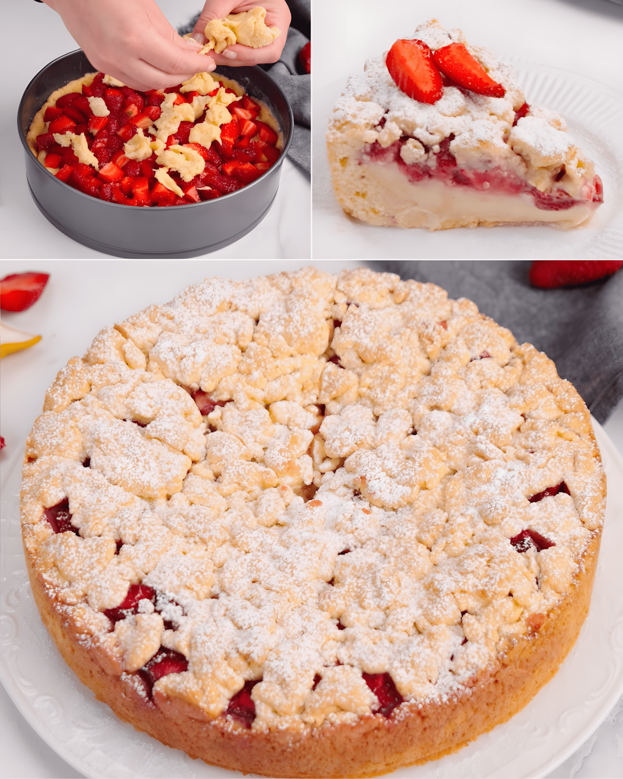 Kruimeltaart met Aardbeien en Banketbakkersroom