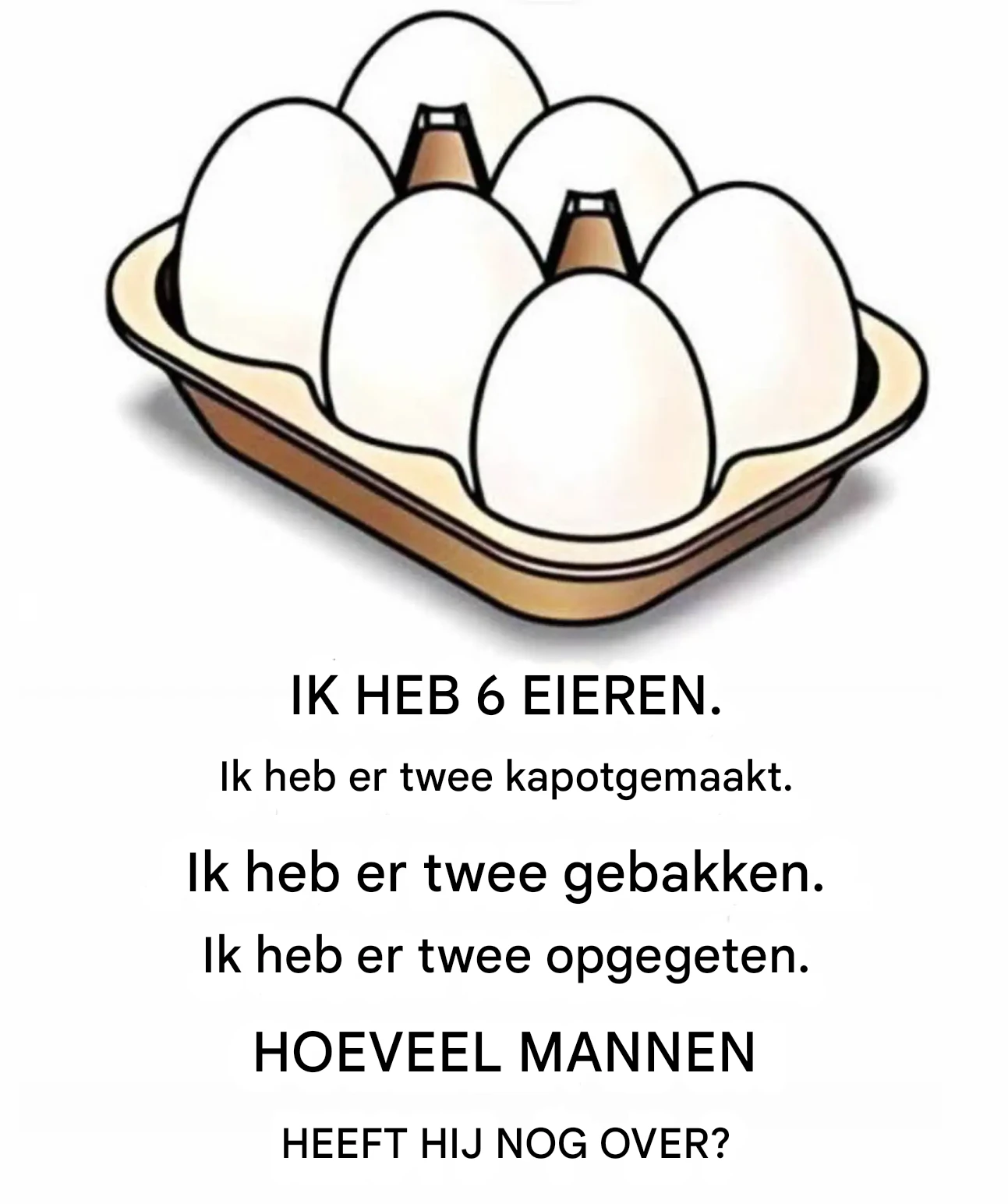 Het wordt al snel duidelijk: dit soort puzzels vereist geen wiskundige vaardigheden, maar een te grote intuïtie… soms wel té snel. Ons brein wil graag meteen ter zake komen, vooral als de opgave kort is. We tellen de handelingen in gedachten bij elkaar op – breken, koken, eten – en voilà, het antwoord lijkt voor de hand liggend. Spoiler alert : dat is het nooit echt.