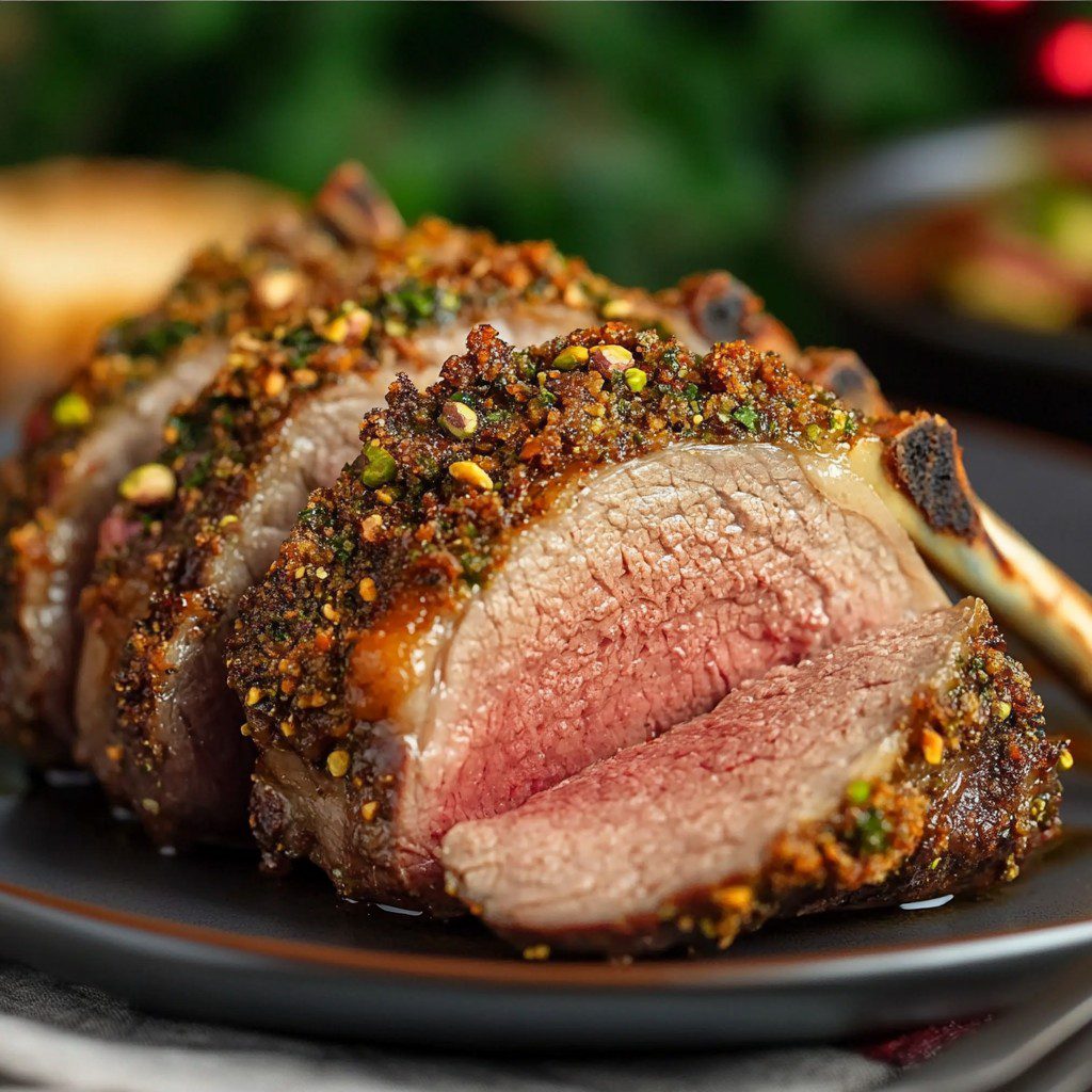 Lamsrack in een pistachekorst met rijke jus