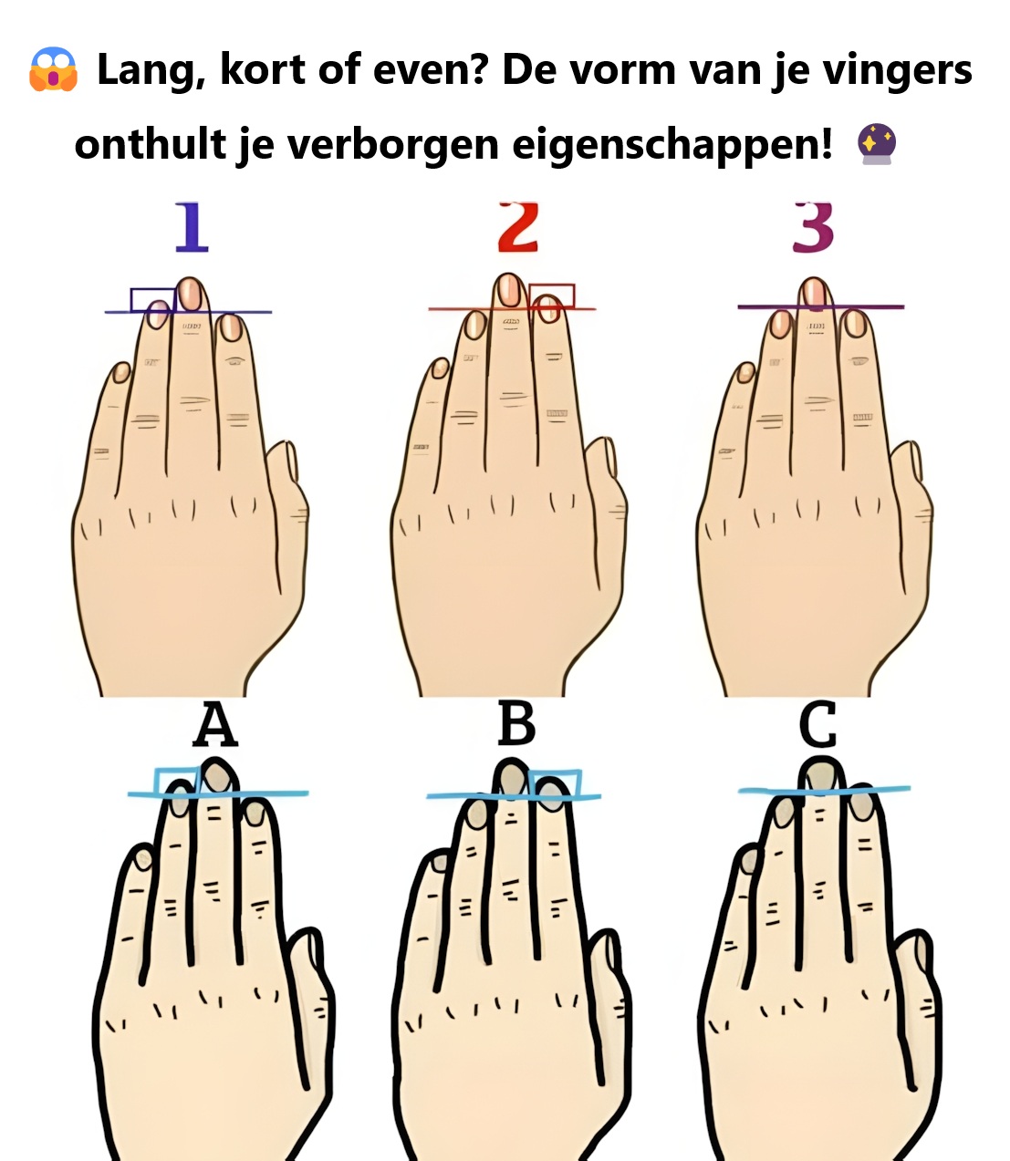 Kijk naar je hand en vergelijk de lengte van je wijs- en ringvinger met de afbeeldingen bovenaan dit artikel. Wat zegt jouw vingerlengte over jou? 🤲✨