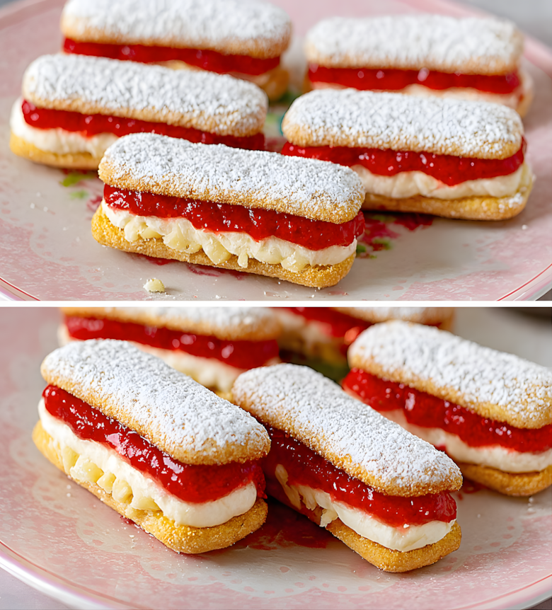 Mijn slimme zomerdessert: vers, zonder bakken en klaar in 5 minuten met alleen yoghurt, lange vingers en lichte jam. Gevulde lange vingers