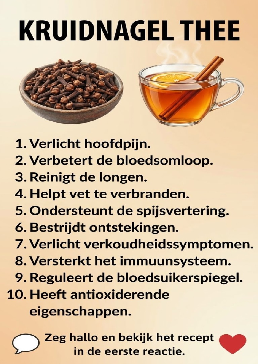 Stel je de kruidige, warme geur van kruidnagel voor die je keuken vult bij zonsopgang. Voel je die tinteling op je tong al, die warmte die zich vanuit je maag verspreidt? Wat als een simpel kopje pijntjes en kwalen kon verzachten waar je al jaren last van hebt? De stoom stijgt op, de intense smaak wekt slapende zintuigen. Maar wacht eens even, wat als dit traditionele Mexicaanse drankje geheimen zou bevatten die maar weinig Mexicanen kennen? Lees verder, want wat er gaat gebeuren, zal je sprakeloos maken.